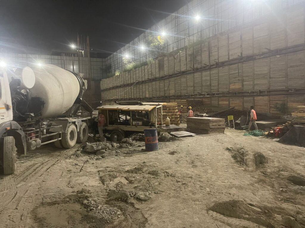 MPM Group is currently executing critical RCC, raft foundation, retaining wall, shuttering, curing, and finishing works at Exotica One 32 Noida. With advanced construction planning and quality-focused execution, this project reflects structural strength, engineering accuracy, and commercial-grade finishing standards.